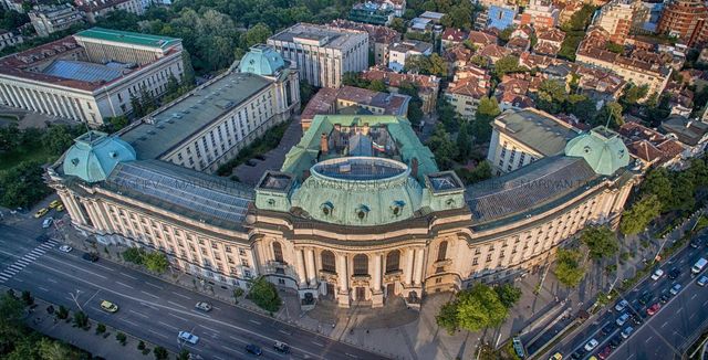 Вражаюча будівля, перший вищий навчальний заклад в Болгарії, заснований в 1888 році, а сама будівля побудована в 1925 році на гроші братів Євлогія і Христо Георгієвих, статуї, яких, до речі, встановлені по обидва боки парадного входу.