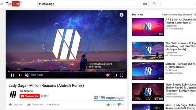 Якщо натиснути на невеликий прямокутник у нижньому правому куті відео, то ви перейдете в режим "кінотеатру".