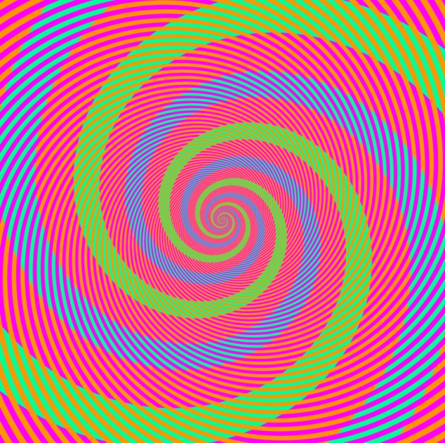 Ми бачимо два види спіралей: блакитні й салатові. Але вони всі одного кольору: R = 0, G = 255, B = 150. Можете перевірити і здогадатися, у чому хитрість цієї ілюзії.
