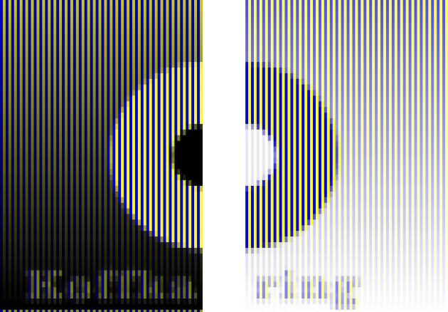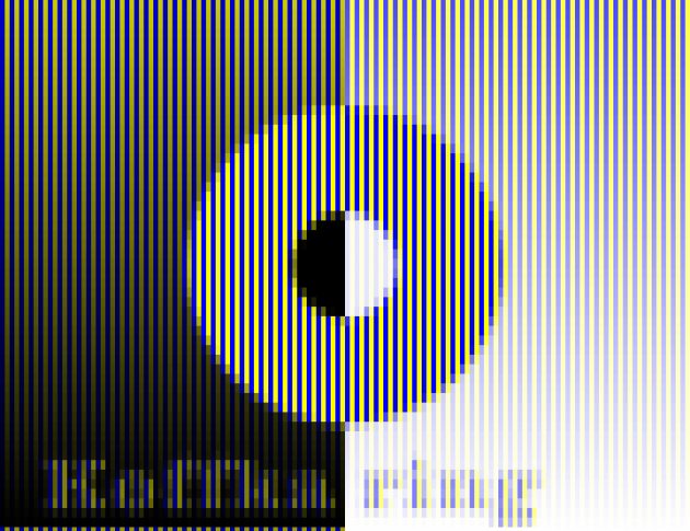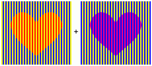 Якого кольору коло на цій картинці? Виявляється, що воно складене зі смужок двох кольорів – синього і жовтого. Але що трапиться, якщо розламати картинку навпіл?