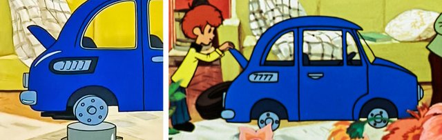 Не знаємо, як допустила таке мама, але машина Дяді Федора і тата стояла в кімнаті на каструлях, що видно, коли показують це неподобство крупним планом. Однак за кілька секунд каструлі зникли – зате з'явилися шини, яких на попередніх кадрах не спостерігалося.