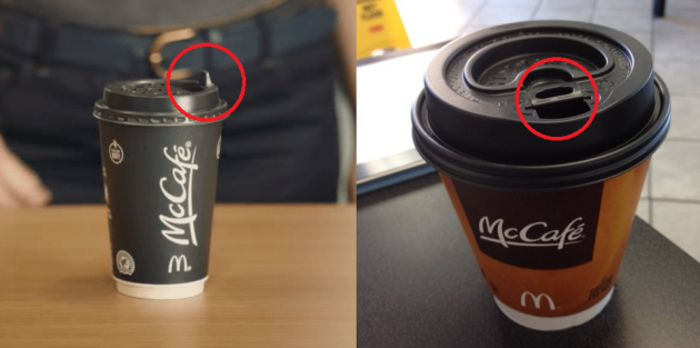 Ви звикли знімати кришку зі склянки або виламувати заглушку на кришці, що заважає пити каву? Все набагато простіше: потрібно загнути її до останку, тоді вона зафіксується в заглибленні.
