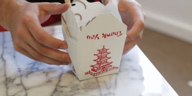 Разом з японськими суші до нас прийшла і китайська локшина. Коробка, у якій продається локшина, – це не тільки упаковка. Її можна розгорнути і використовувати як тарілку. Якщо не все з'їдено, її можна скласти назад, щоб поставити в холодильник.
