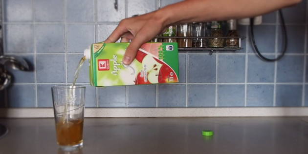 Логічно наливати сік з упаковки, тримаючи його отвором ближче до склянки. Але щоб не розлити напій, краще робити навпаки: горлечко має бути вище.