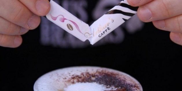 Цукор в стіках незручно відкривати скраю, та це й не потрібно. Такі пакети придумали спеціально для того, щоб розривати їх посередині. Тоді весь цукор висипется в чашку, столик навколо буде чистим, а руки не будуть липнути.
