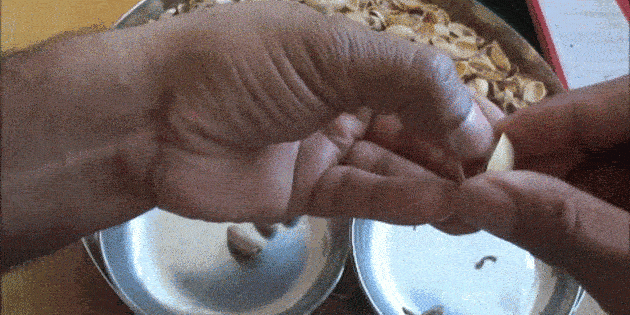 Щоб дістати зі шкаралупи улюблені горішки, ми використовуємо зуби, нігті і підручні засоби. Але все набагато простіше. Досить взяти половинку шкаралупи, вставити її в щілину закритої фісташки і провернути.
