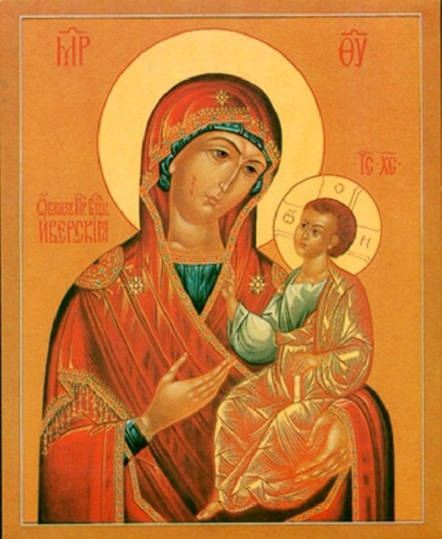 Церковний календар свідчить, що 13 квітня християни вшановують Іверську ікону Божої Матері. При імператорі Феофілі (829-842) іконоборці, що знищували святі ікони, прийшли в будинок цієї християнки, і один воїн списом ударив по образу Богородиці. З ураженого місця потекла кров. Вдова, боячись знищення святині, пообіцяла імператорським воїнам гроші й просила їх до ранку не чіпати ікону. Коли вони пішли, жінка разом з сином, для збереження святої ікони опустила її в море. Ікона, стоячи на воді, припливла до Афону. Афонські ченці, кілька днів бачачи в морі вогняний стовп, що підіймався до неба, прийшли до берега і знайшли святий образ, що стоїть на воді.Згідно з історією, після молебню про дарування монастирю явилася святині благочестивий чернець Іверського монастиря святої Гавриїл Грузин, по велінню Божої Матері, що з'явилася йому уві сні, пішов по воді, прийняв святу ікону і поставив в храмі.