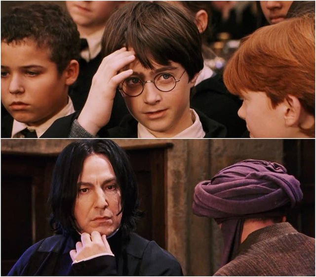 У ті й же першій частині шрам Гаррі вперше заболів, коли Квірел повернувся до нього потилицею, де був Волдеморт