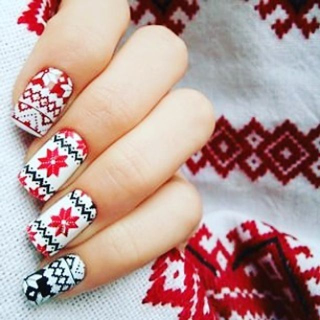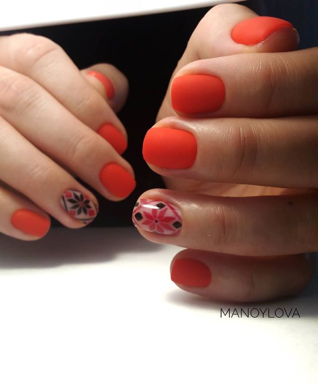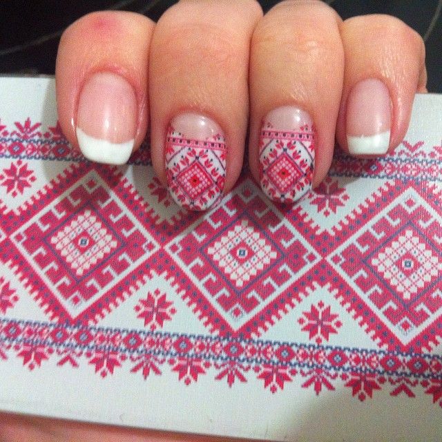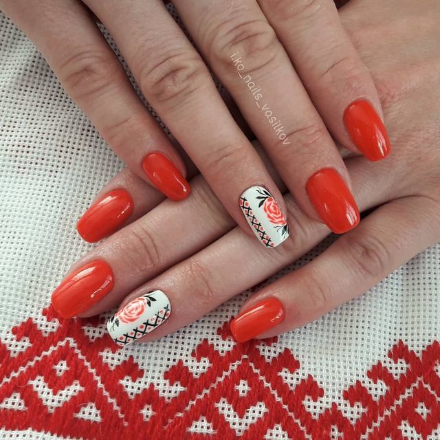 Манікюр-вишиванка ще один доволі популярний варіант. Квіткові принти та геометричні орнаменти, які зустрічалися раніше на сорочках історичних регіонів України: Галичини, Буковини, Закарпаття, Київщини, Гуцульщини, Бойківщини, Покуття – ідеальне доповнення національного образу українки.