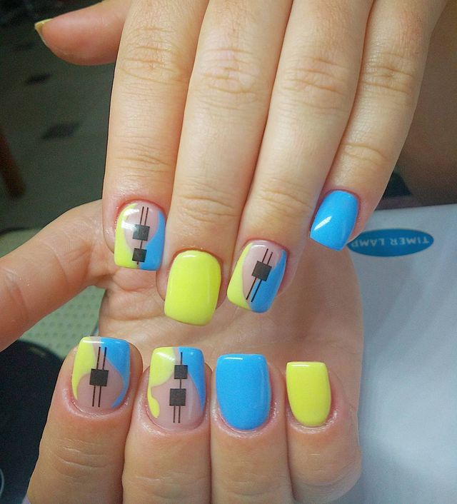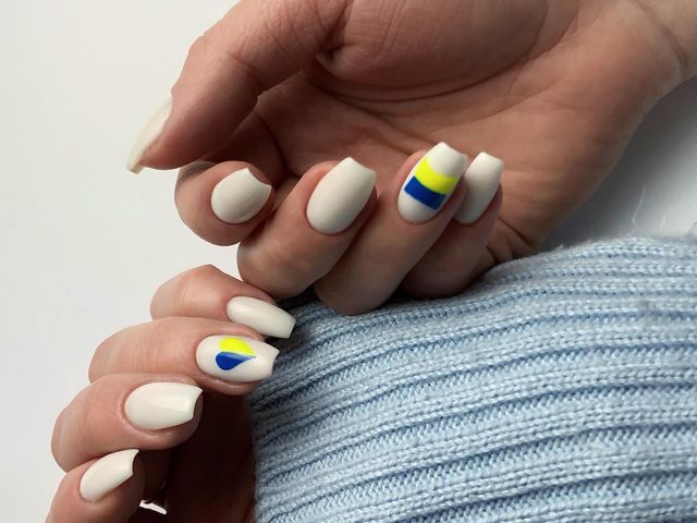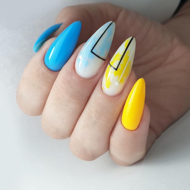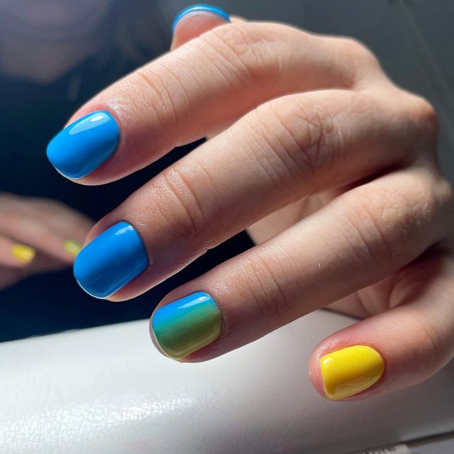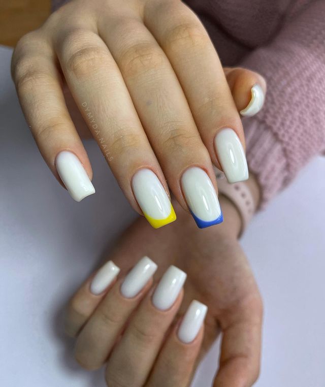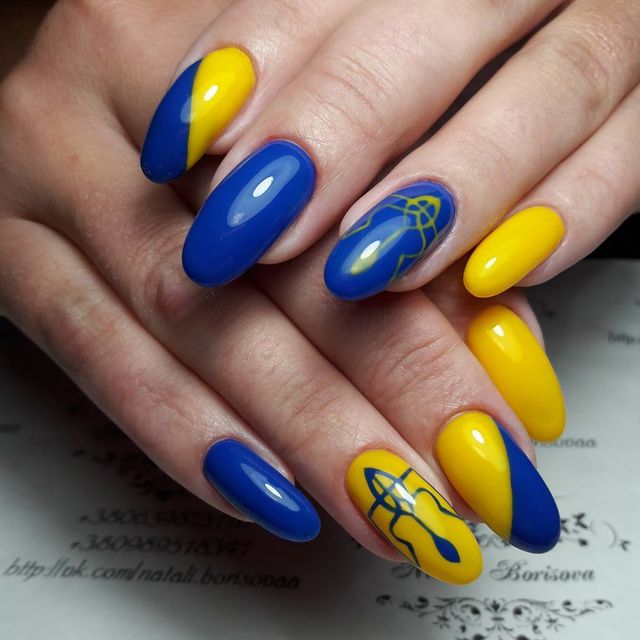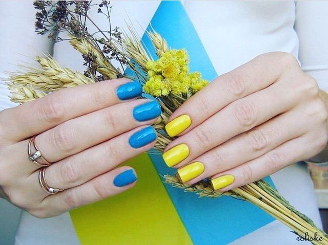 Патріотичний манікюр з українською символікою можна зробити самостійно. Наприклад, двоколірний манікюр виглядатиме дуже незвично і креативно.