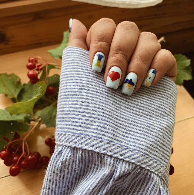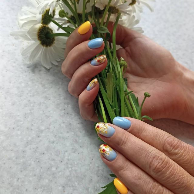 Тож зараз ті жінки нашої країни, що мають можливість і приходять на манікюр, здебільшого замовляють собі патріотичний розпис. Хтось приходить з конкретними побажаннями, а хтось довіряє фантазії майстра. Головне, аби збереглася жовто-блакитна палітра! 40 ідей патріотичного манікюру підготували для вас Радіо МАКСИМУМ.