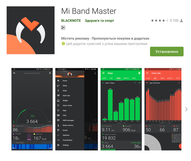 Mi Fit – панацея? Я б так не сказав, адже він не лише виглядає трішки убого після оновлення, а й не дозволяє розкрити весь потенціал браслета. Втім, для першого зв'язку зі смартфоном слід використати саме рідний додаток від Xiaomi. Далі рекомендую користуватися Mi Band Master. До слова, в ньому можна просто вибрати мову браслета (українська теж поки не доступна) і спокійно користуватися українською на смартфоні. Однак, цей додаток поки що не дозволяє браслету перемикати композиції. Втім, розробники обіцяють якомога скоріше це виправити.