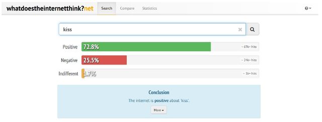 Вам хочеться знати, що думають інтернет-користувачі про те чи інше явище, подію, людину і т.д. Чи подобаються людям поцілунки, гамбургери, життя чи ні – дізнайтеся на сайті whatdoestheinternetthink.net.