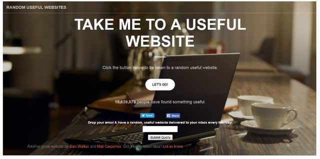 Сервіс randomusefulwebsites.com перекине вас на випадково обраний сайт з корисною інформацією. Треба лише натиснути на кнопку "Let's go".