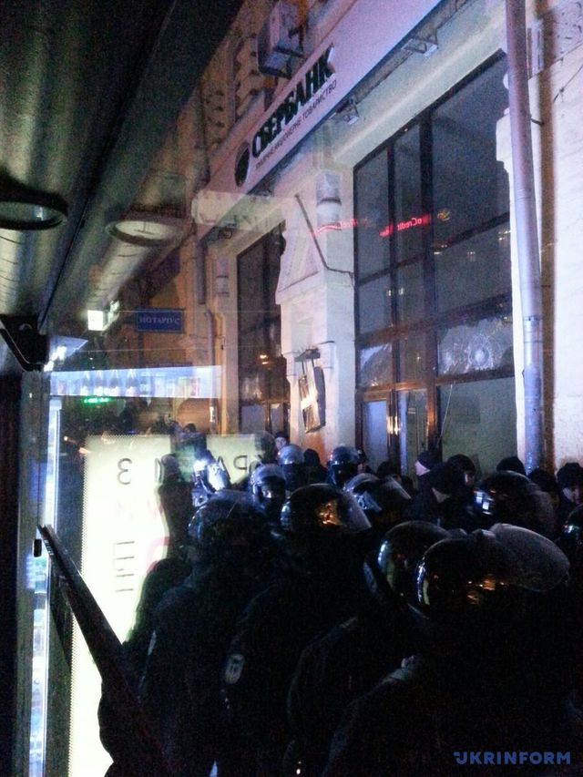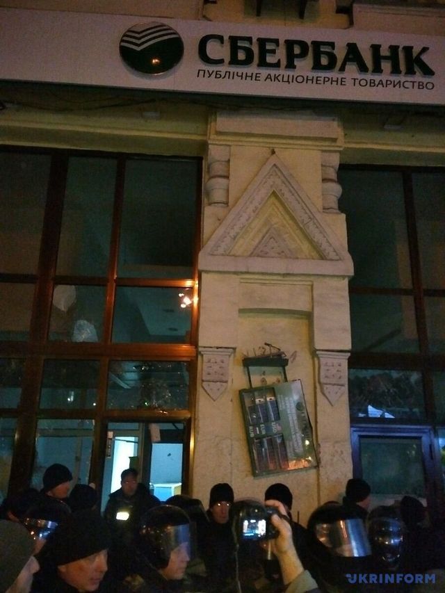 У будівлі розбиті вітрини та виламані двері, передає Еспресо.TV. Декілька активістів пройшли всередину та розбили банківську установу. За 10 хвилин на місце прибули представники правоохоронних органів, які заблокували натовп. За попередніми даними, трьох людей затримано.