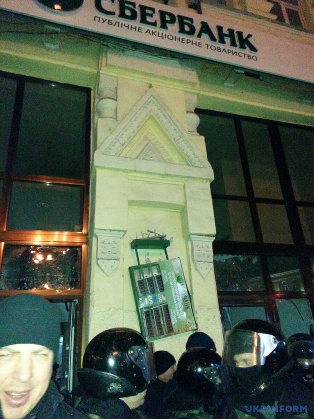 Частина учасників мітингу почала громити відділення "Сбербанка" поблизу метро "Льва Толстого".