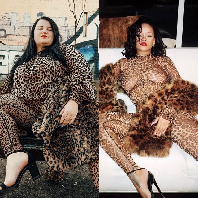 Так, днями в Instagram alyona alyona з'явилися жартівливі фотопорівняння з Ріанною і Тревісом Скоттом. Для пародії на американську співачку реперка одягнула леопардові лосини і худі. Образ доповнили шуба зі штучного хутра і чорні босоніжки.