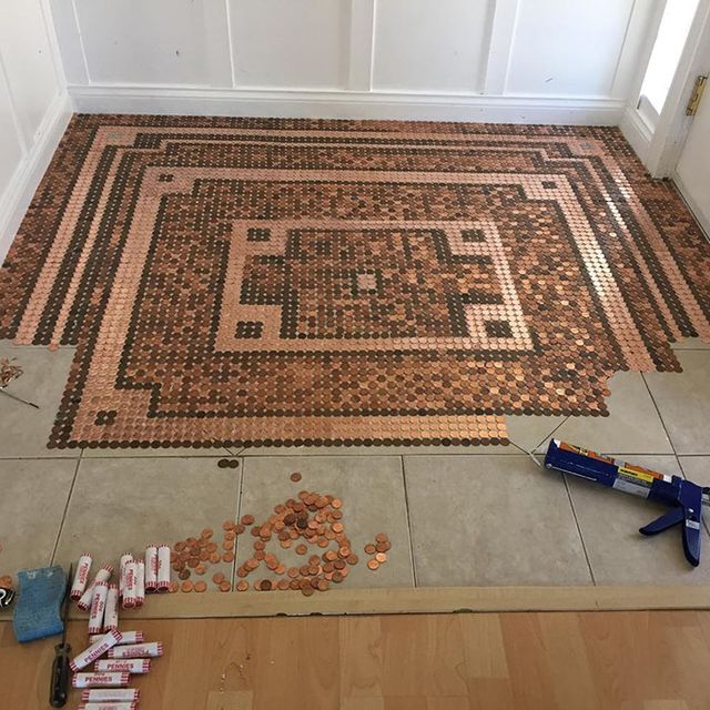 Келлі Грем поділилася остаточним результатом п'ятирічного проєкту. У 2015 році вона вирішила викласти підлогу у передпокої одноцентовими монетками. Всього на це пішло 7 500 монет і багато герметика. П'ять років по тому підлога все ще має відмінний вигляд.