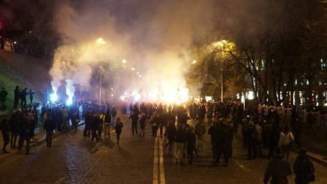 Учасники маршу застосували піротехнічні засоби біля Лаври.