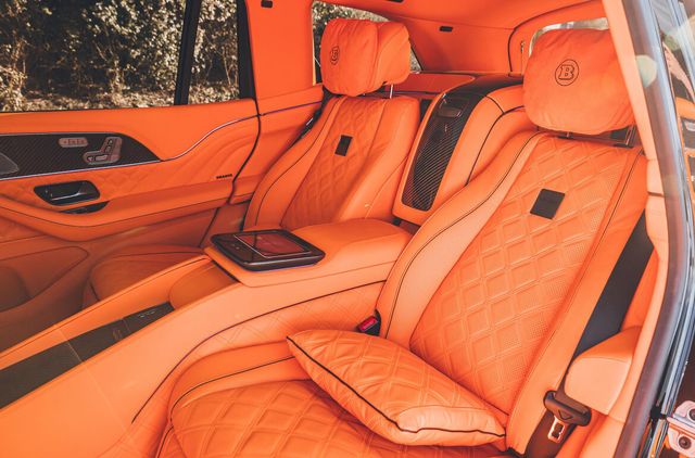 Салон – до пари Maybach. Це відшитий вручну Brabus Masterpiece з м'якої шкіри кольору Leonis Orange з простроченням Double Cube на сидіннях. Він доповнений вставками з видимого вуглепластику, алюмінієвими накладками на педалі й елементами в темному хромі.
