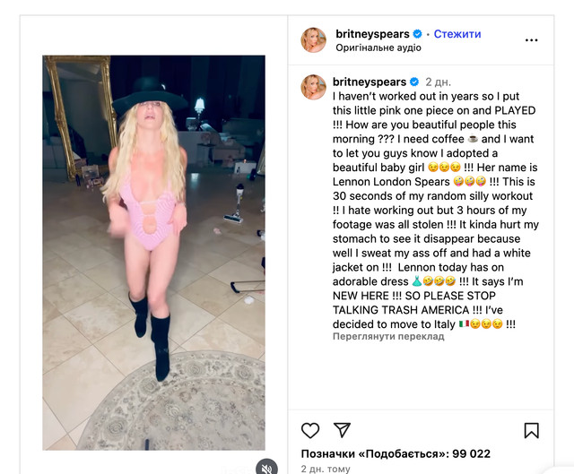 У притаманному Брітні Спірс стилі зірка поділилася новиною за допомогою відео, де танцює у рожевому комбінезоні у своєму передпокої. Під відео артистка написала:
