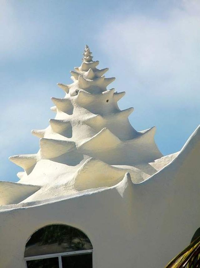 На тихому мексиканському острові Ісла-Мухерес, всього в 13 км від одного з найпопулярніших курортів Мексики, Канкуна, знаходиться дуже незвичайна споруда – Будинок-мушля (Conch Shell House).