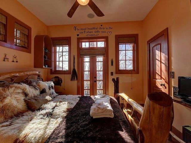 Зі спальні, до речі, є вихід на балкон. Види тут, одним словом, неймовірні. Будиночок знаходиться досить далеко від жвавих трас і доріг, тому тиша тут вічний супутник.