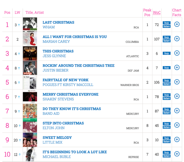 Пісня "Last Christmas" поп-дуету Джорджа Майкла й Ендрю Ріджлі Wham! уперше очолила британський чарт. І це через 36 років після першого релізу. Про це свідчать дані британської організації The Official Charts Company, що займається складанням офіційних музичних хіт-парадів у країні.