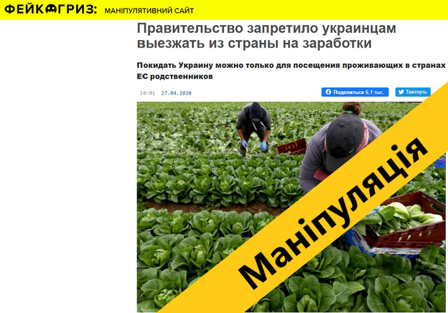 А от свіжі маніпуляції про заробітчан, як пояснюють фактчекери ресурсу "Наші гроші.Львів", розтиражували медіа, посилаючись на посла Естонської Республіки в Україні Каімо Кууска. Цитувати посла Естонії почали у зв'язку з ситуацією щодо виїзду сезонних працівників до Фінляндії.