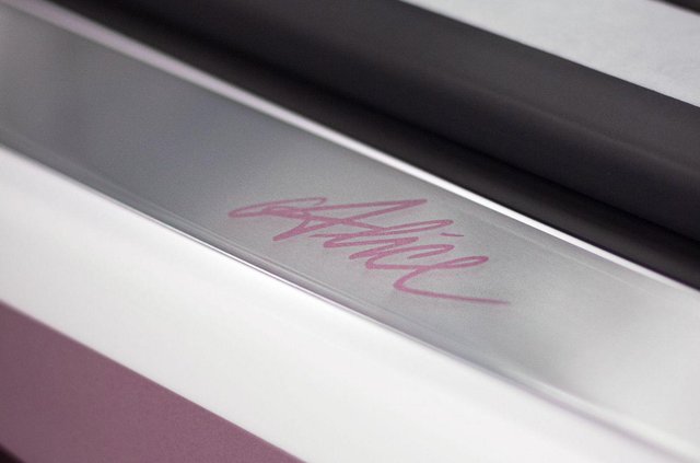 Крім унікального біло-рожевого кольору кузова та колісних дисків, гіперкар виділяється обробкою салону шкірою Gris Rafale. На підголівниках вишивка Alice; аналогічні написи продубльовані на порогах.