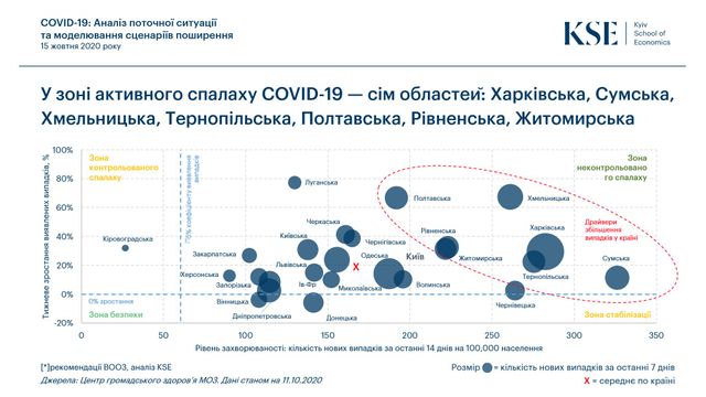 "Суворий карантин треба вводити там, де найбільші центри спалаху. За нашими розрахунками на сьогодні це сім областей: Харківська, Сумська, Хмельницька, Тернопільська, Полтавська, Рівненська та Житомирська. У кожній з областей є райони та міста, які додають найбільше до поширення інфекції. Саме там необхідно застосовувати обмеження...", – зазначили фахівці.