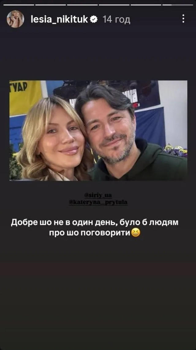 Леся Нікітюк привітала Сергія Притулу з народженням четвертої дитини / Фото з інстаграм-сторіс телеведучої