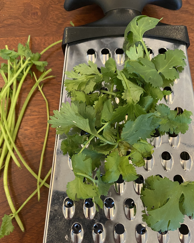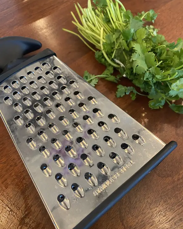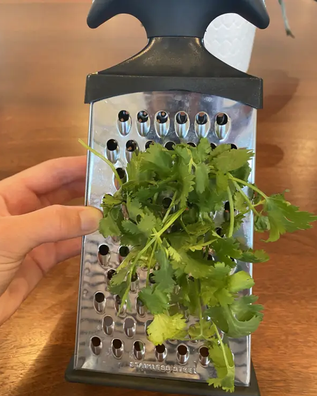 - Що вам знадобиться: терка та будь-яка листова зелень, наприклад, кінза, розмарин або петрушка.