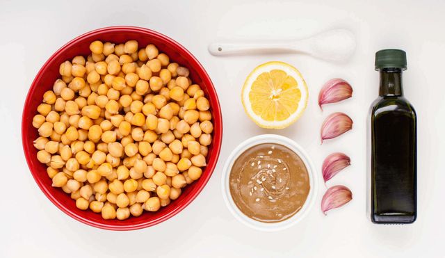 - У кухонному комбайні змішайте нут, тахіні, кмин, сік половини лимона, часник і пробийте на максимальній швидкості. Повільно додавайте олію, намагаючись домогтися потрібної консистенції.