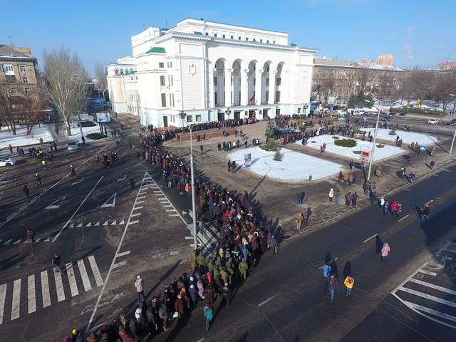 Відзначимо, що жителі Донецька і Макіївки зізналися, що їх примусово привезли на похорон терориста. За даними кремлівських ЗМІ, у будівлі "Донбас Опери" зібралися близько тисячі осіб. Вони утворили чергу вздовж центральної вулиці Артема.