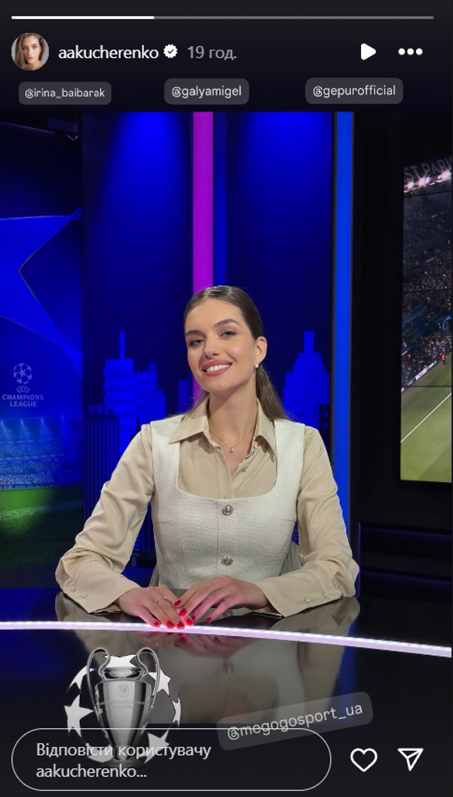 Олександра поділилася в розповідях в інстаграмі фото зі студії, де працює ведучою спортивних новин.
