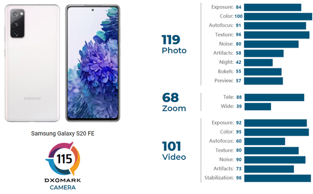 За підсумком всіх тестів Galaxy S20 FE отримав у залік 115 балів, що можна порівняти з флагманами 2019 року.