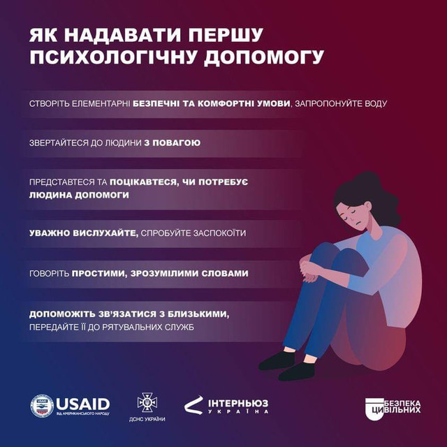 - Допоможіть людині зв’язатися з її близькими, передайте її до рятувальних служб або служб підтримки