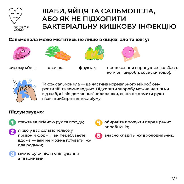 Дотримуйся гігієни рук та посуду, купуй продукти лише в перевірених місцях і кишкові інфекції оминуть тебе стороною", – додають у "Бережи себе".