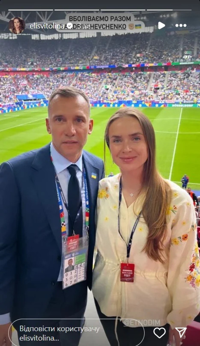 На стадіоні Світоліна зробила фото з президентом Української асоціації футболу Андрієм Шевченком.