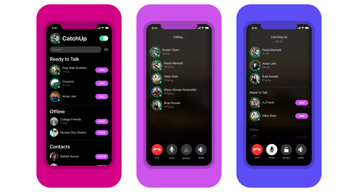 Дослідження компанія показали, що одна з головних причин, по якій люди не дзвонять друзям і родичам частіше, полягає в тому, що вони не знають, коли ті готові говорити, чи побоюються, що можуть зв'язатися з ними 3 незручний час. CatchUp повинен вирішити цю проблему.
