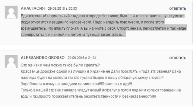 Нагадуємо, що у зв'язку з реконструкцією футбольного поля всім дитячо-юнацьким спортивним школам заборонили користуватися навіть частиною бігових доріжок (загалом уже 3 місяці). Тепер треба заново переливати доріжку, аби приймати змагання рівня чемпіонату України та інших, міжнародних. А це знову наші з вами капіталовкладення у вигляді податків, – написали спортсмени.