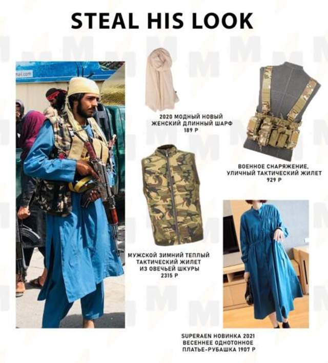 Журналісти Medialeaks, своєю чергою, вирішили знайти схожий образ членів "Талібану" на AliExpress. Так, одяг чоловіка у помаранчевому вбранні можна купити за 2,5 тисячі гривень, а загальна вартість екіпіровки бойовика у синьому на AliExpress склала 1,9 тисячі гривень.