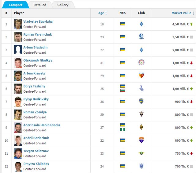 На другому місці розташувався форвард "Гента" Роман Яремчук – 3,5 мільйона євро, а замкнув трійку ще один гравець "Динамо" Артем Бесєдін – 2,5 мільйона євро.
