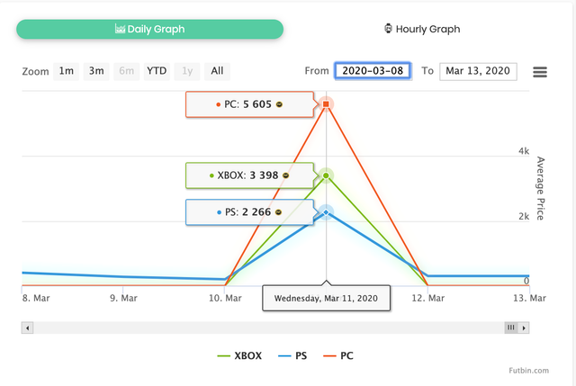 Днями він підхопив коронавірус, і ком'юніті FIFA відреагувало на ці новини негайно, але не дуже сердечно. Картка непримітної за мірками гри футболіста з рейтингом 66/100 різко зросла у ціні, і масштаб цих змін відрізняється на кожній платформі. Наприклад, на PlayStation 4 вона подорожчала з 200 до 3550 монет, на Xbox One – з 1900 до 6450, а на PC – з 4900 до 8075 монет.