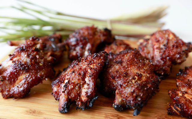 - Противень застеліть папером для випічки. Це можна робити за бажанням. Викладіть все відбивні на деко. Помажте кожну відбивну гірчицею. Полийте соєвим соусом, посоліть і поперчіть.