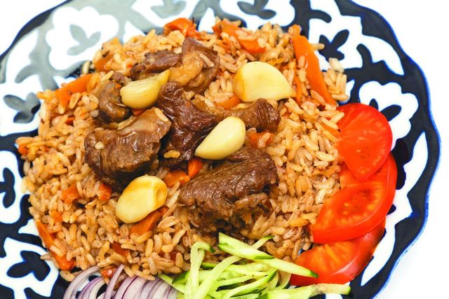 - Поки готується зажарка, рис відваріть в 3-4 склянках води з додаванням 1 ч. л. солі. Варіть на невеликому вогні до готовності (приблизно 15 хвилин). Промийте рис під холодною водою. Перекладіть рис в пательню з м'ясом і овочами, перемішайте, прогрійте хвилини 2. Плов зі свининою готовий.