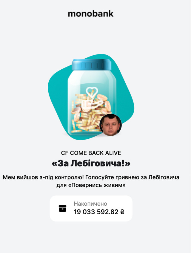 Станом на ранок 4 вересня сума на банці Лебіговича рекордна, адже за лічені години українці зібрали 19 мільйонів гривень. Всі гроші будуть передані у фонд "Повернись живим". Проте сума може ще збільшитися, адже люди продовжують скидати кошти.