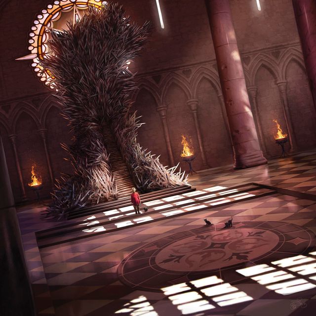 Дені у своїй фінальній сцені ділиться з Джоном спогадом з дитинства, коли вона ще не дуже вміла рахувати, але уявляла собі Залізний трон з тисячі мечів загиблих ворогів Ейгона Таргарієна (першого короля на троні) зовсім не таким, а справді величезним. Саме так він виглядав у книжках Джорджа Мартіна.