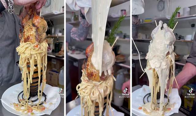 Це "сендвіч" з цілою засмаженою пташкою та сирним соусом